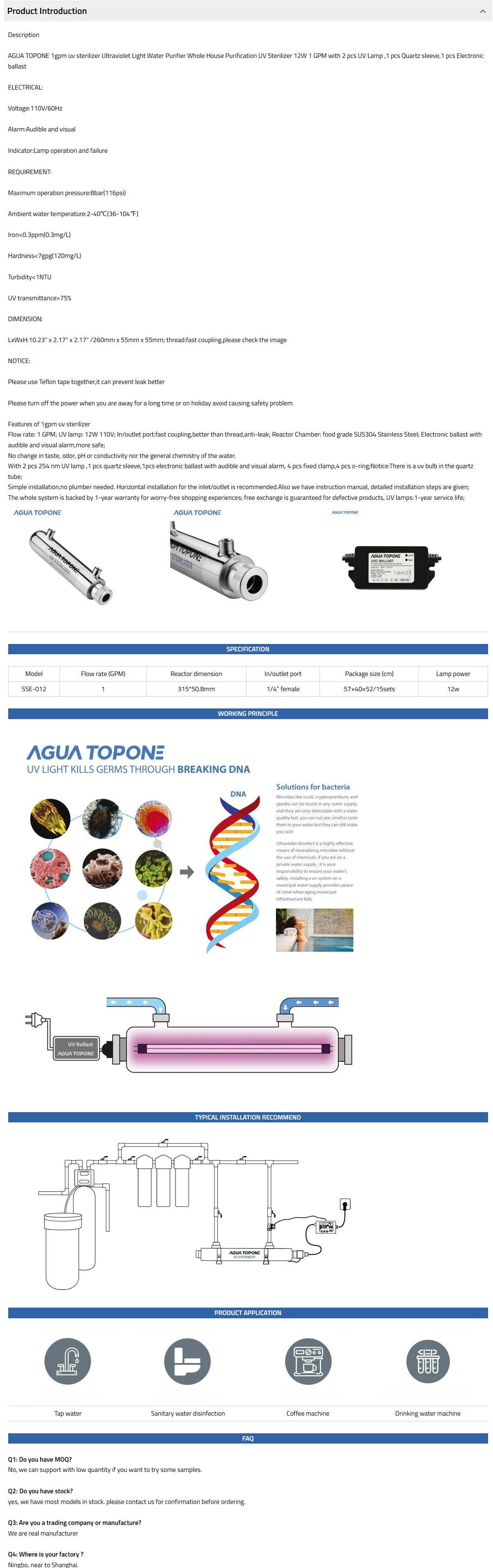 The SSE range has 8 models in the range and options to allow flexible installation, it is ideal for water tap, water disinfection system, etc.