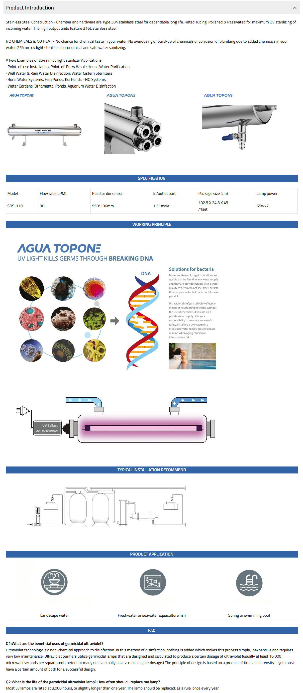 SDS UV range is mainly for commercial use which is perfect for commercial use, such as swimming pool, hotel, school etc. it comes with a stand which can be wall mounted.