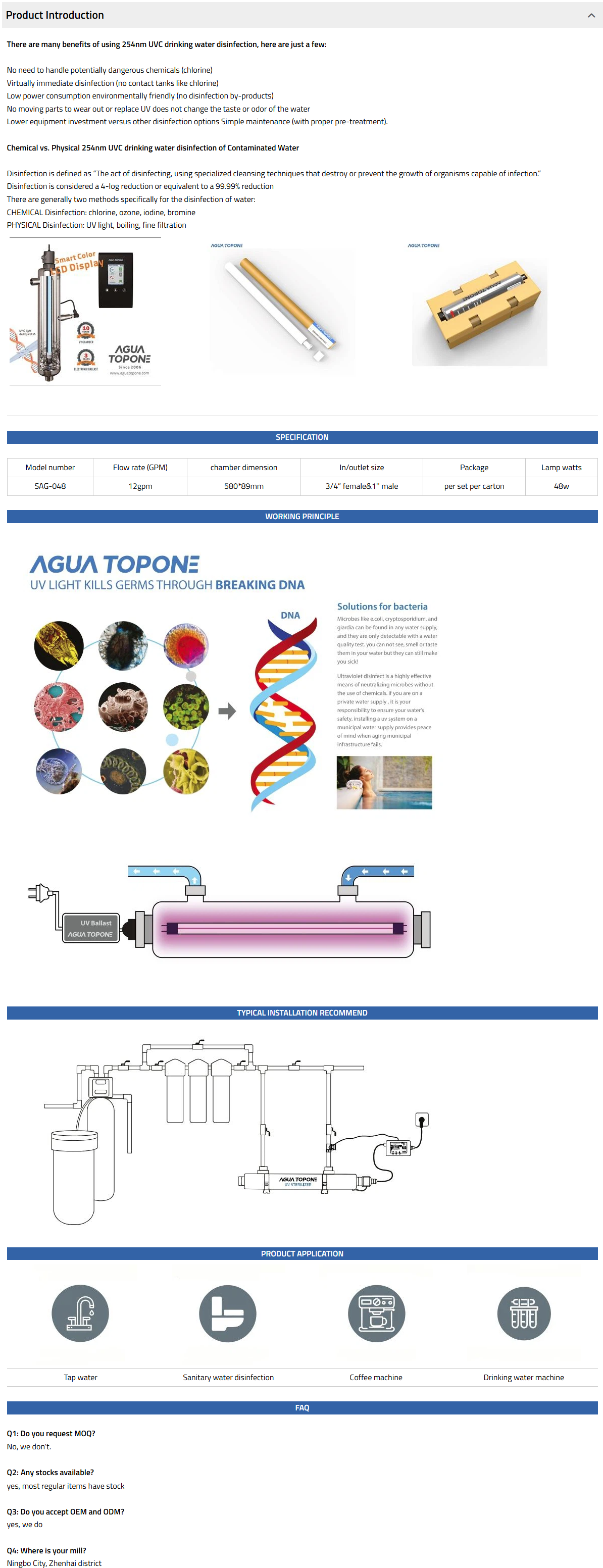 The SAG range has 3 models in the range and options to allow flexible installation, it is ideal for water tap, water disinfection system, etc.
