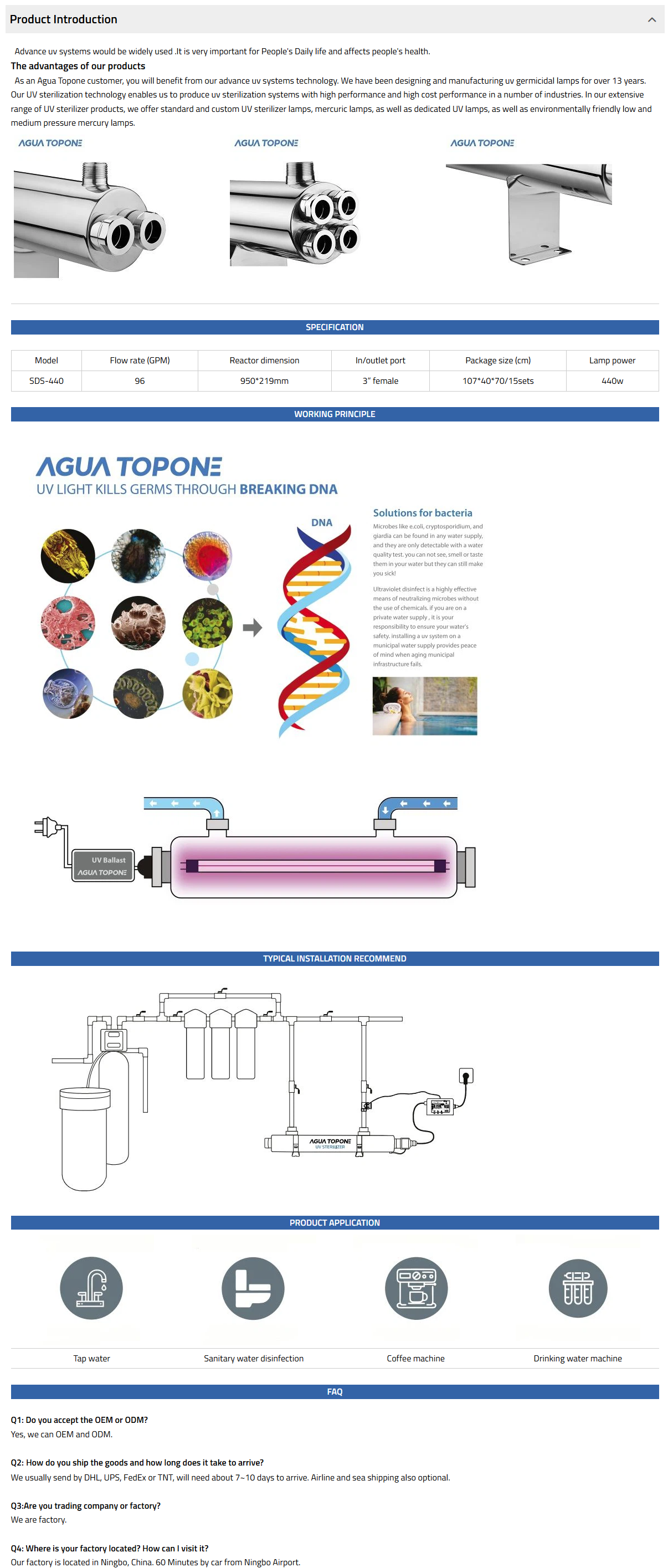 The SSE range has 8 models in the range and options to allow flexible installation, it is ideal for water tap, water disinfection system, etc.