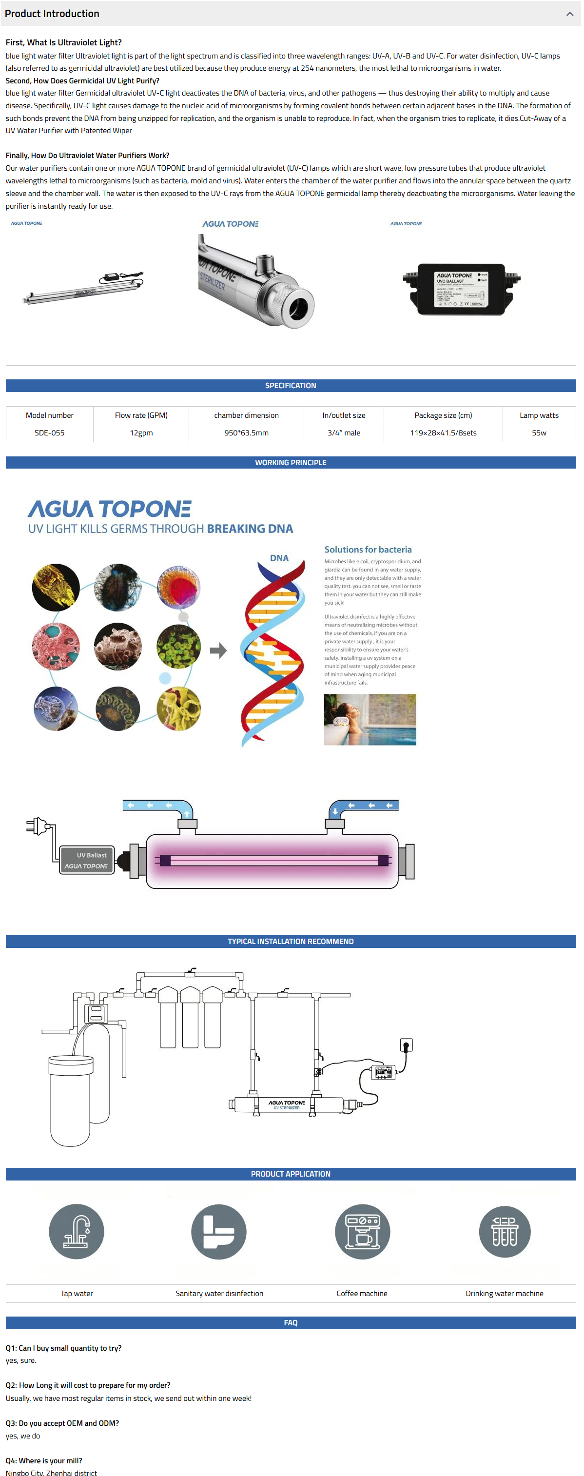 The SDE range has 8 models in the range and options to allow flexible installation, it is ideal for water tap, water disinfection system, etc.