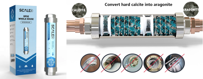 A revolutionary breakthrough in scale prevention! The Water Descaler is a flow-through device that utilizes Dynamic Physical Scale Elimination (DPSE) technology.