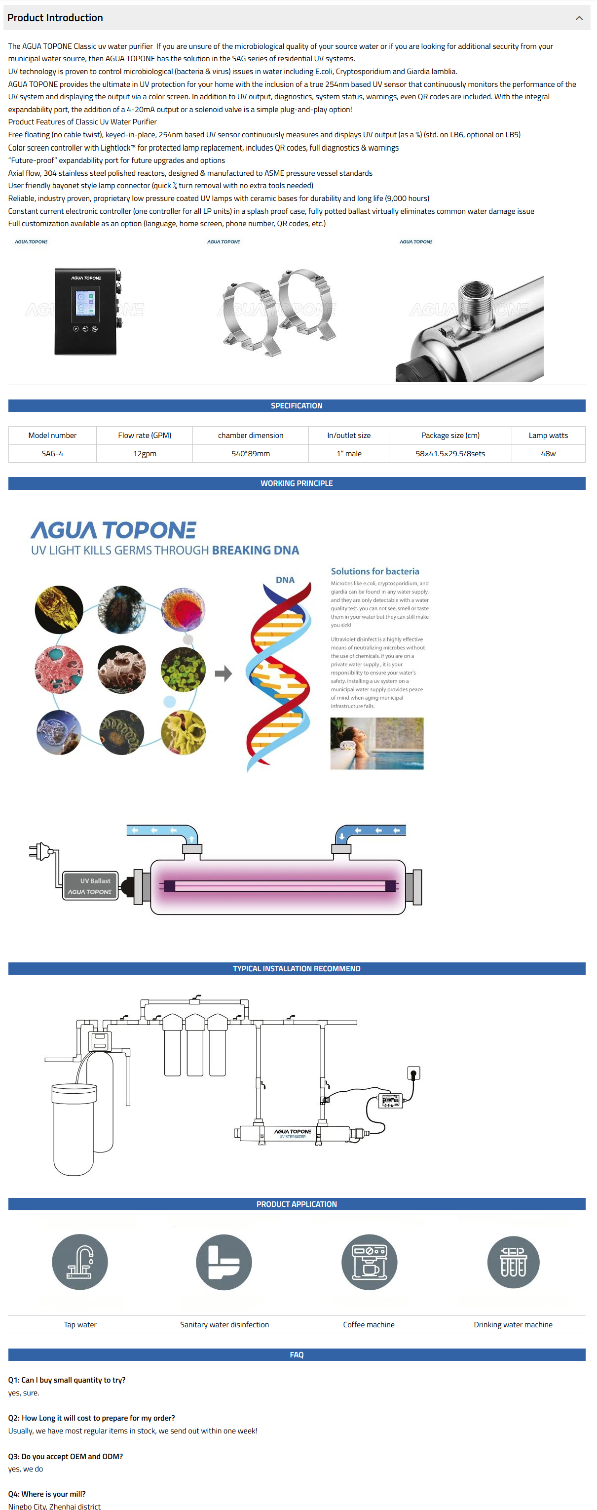 The SAG range has 3 models in the range and options to allow flexible installation, it is ideal for water tap, water disinfection system, etc.