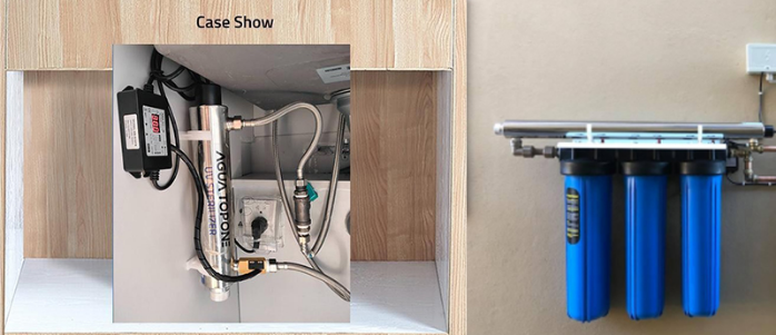 UV Disinfection Unit: We generally recommend installing the UV disinfection unit at the end of the whole-house water purification system. By this point, factors that could affect the efficiency of UV disinfection have already been addressed by the previous filtration stages. When selecting a UV disinfection unit, it is important to choose one that matches your household’s water flow rate, and to select the appropriate model based on your home’s installation environment.