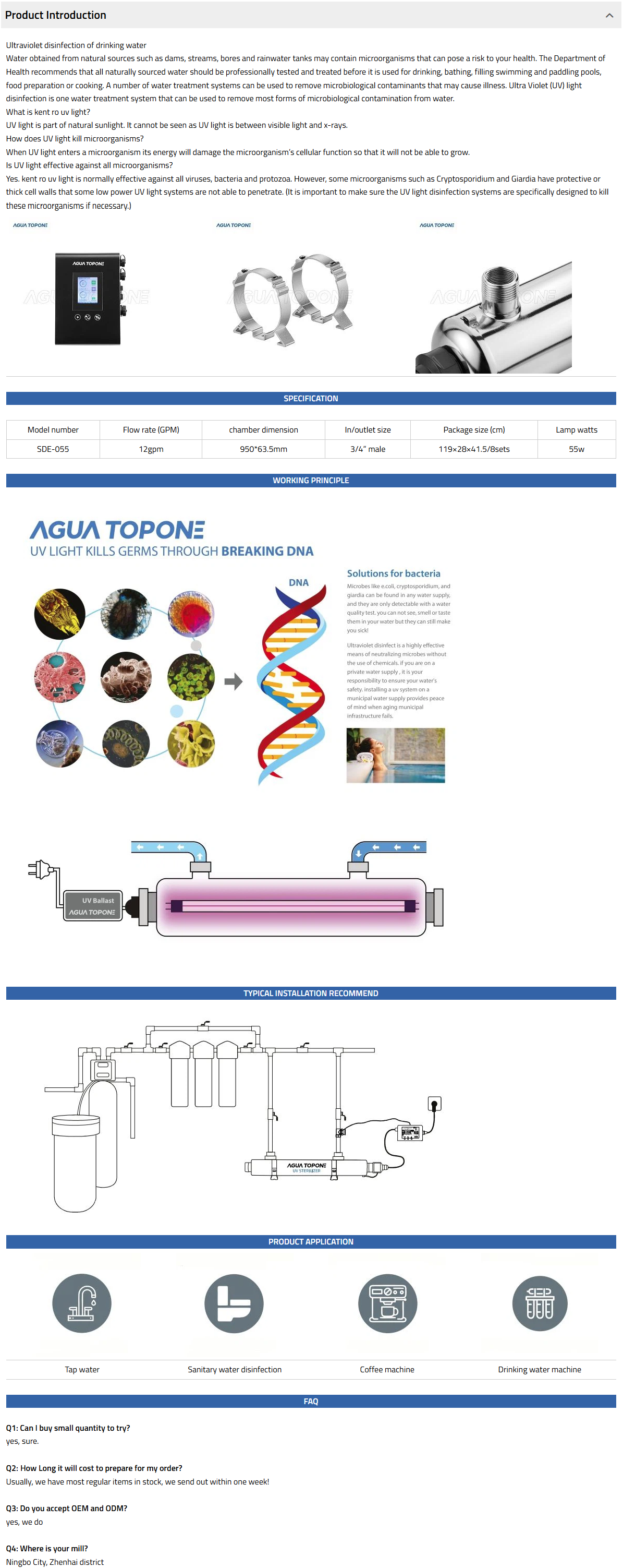 The SAG range has 3 models in the range and options to allow flexible installation, it is ideal for water tap, water disinfection system, etc.