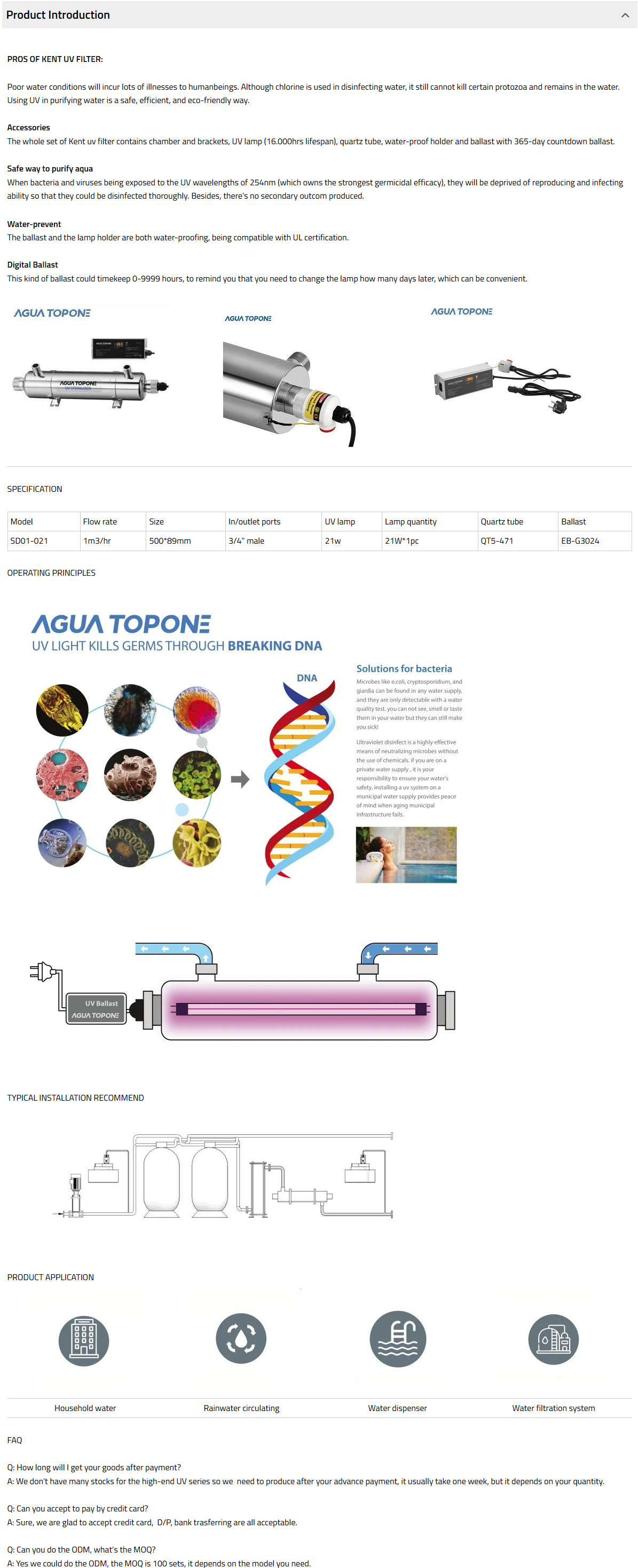 SD01 series, one of our high-end UV aqua llight, is with countdown timer ballast and premiun stainless steel reactor.