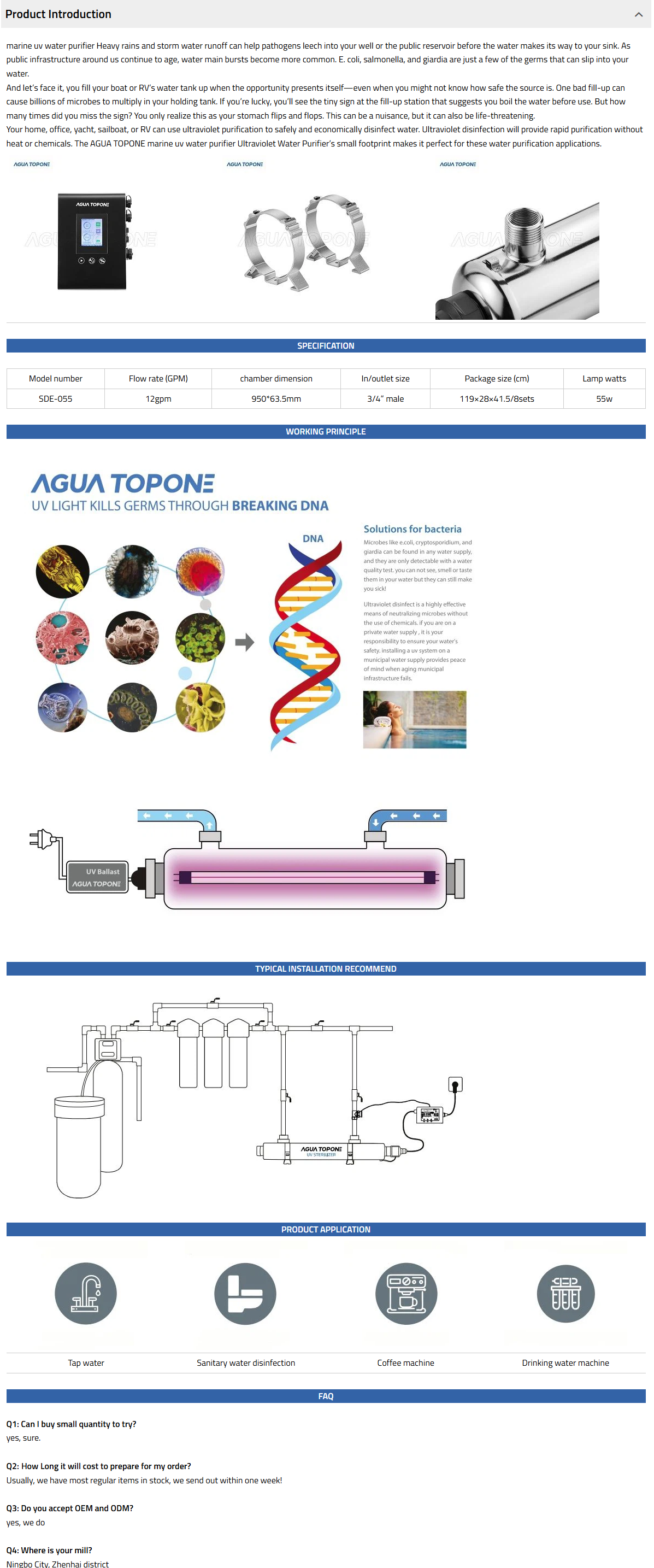 The SAG range has 3 models in the range and options to allow flexible installation, it is ideal for water tap, water disinfection system, etc.