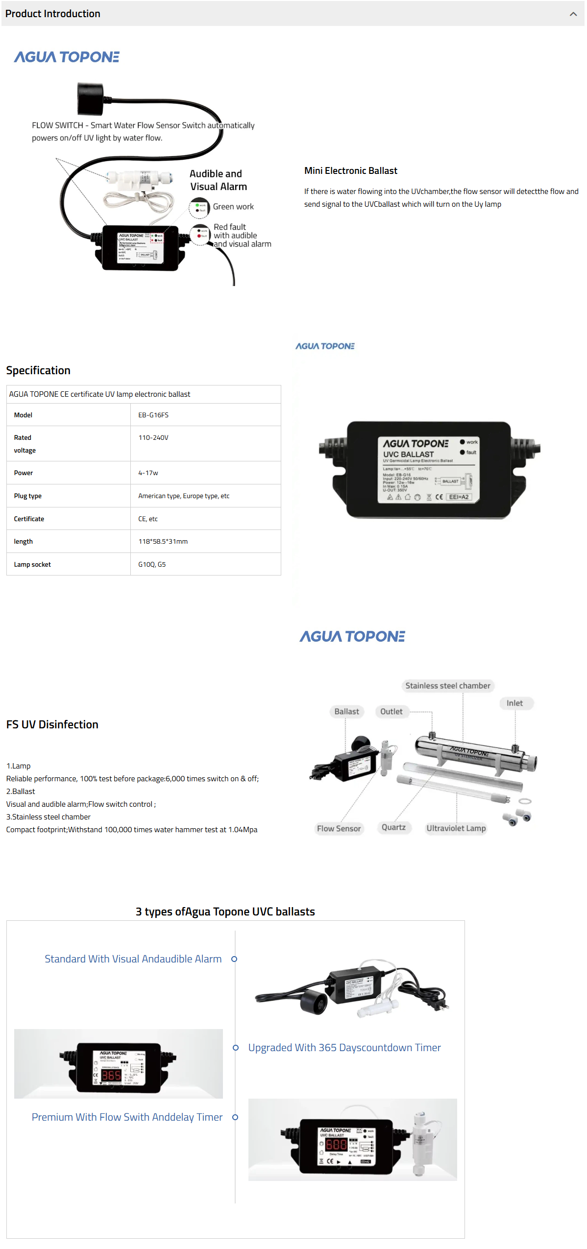 The P2 low-power mini UV ballast is designed for small household UV lamp water sterilizers. Its compact design allows for convenient placement and includes a delay function.