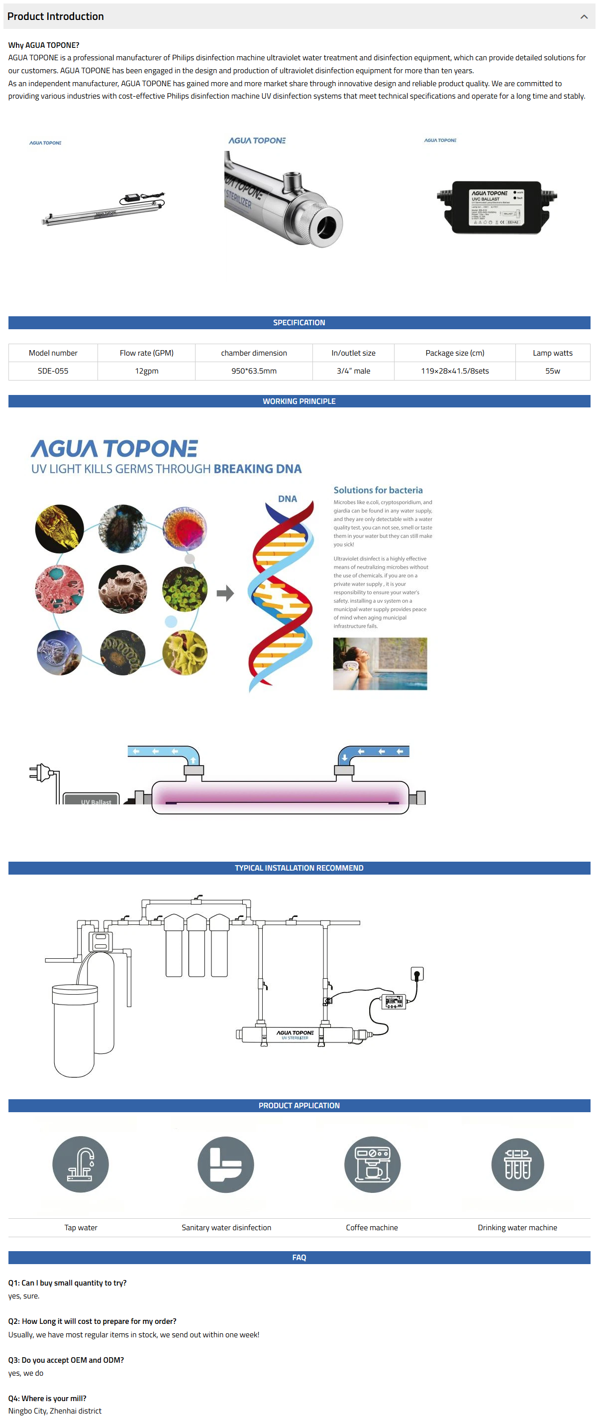 The SDE range has 8 models in the range and options to allow flexible installation, it is ideal for water tap, water disinfection system, etc.