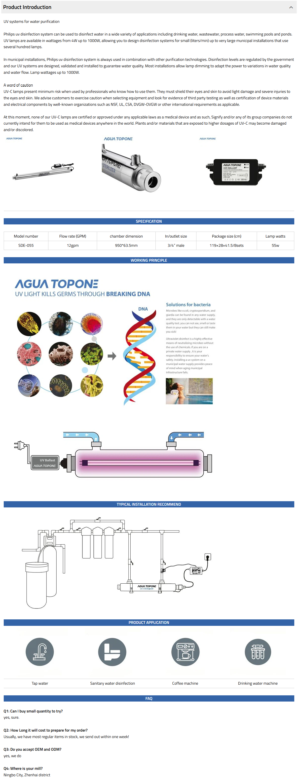 The SDE range has 8 models in the range and options to allow flexible installation, it is ideal for water tap, water disinfection system, etc.