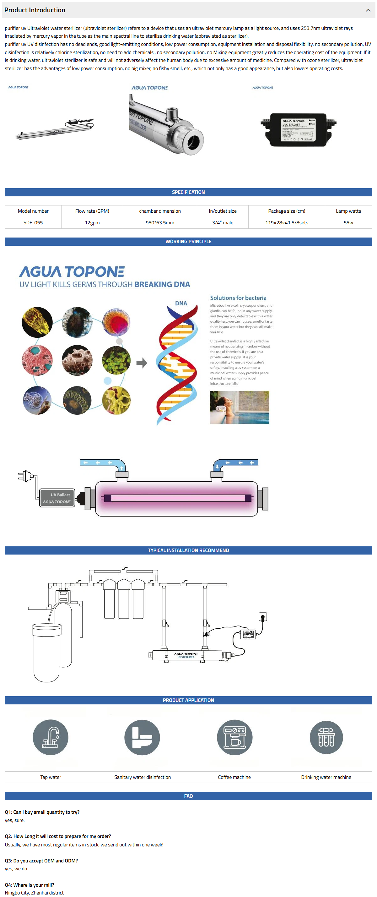 The SDE range has 8 models in the range and options to allow flexible installation, it is ideal for water tap, water disinfection system, etc.