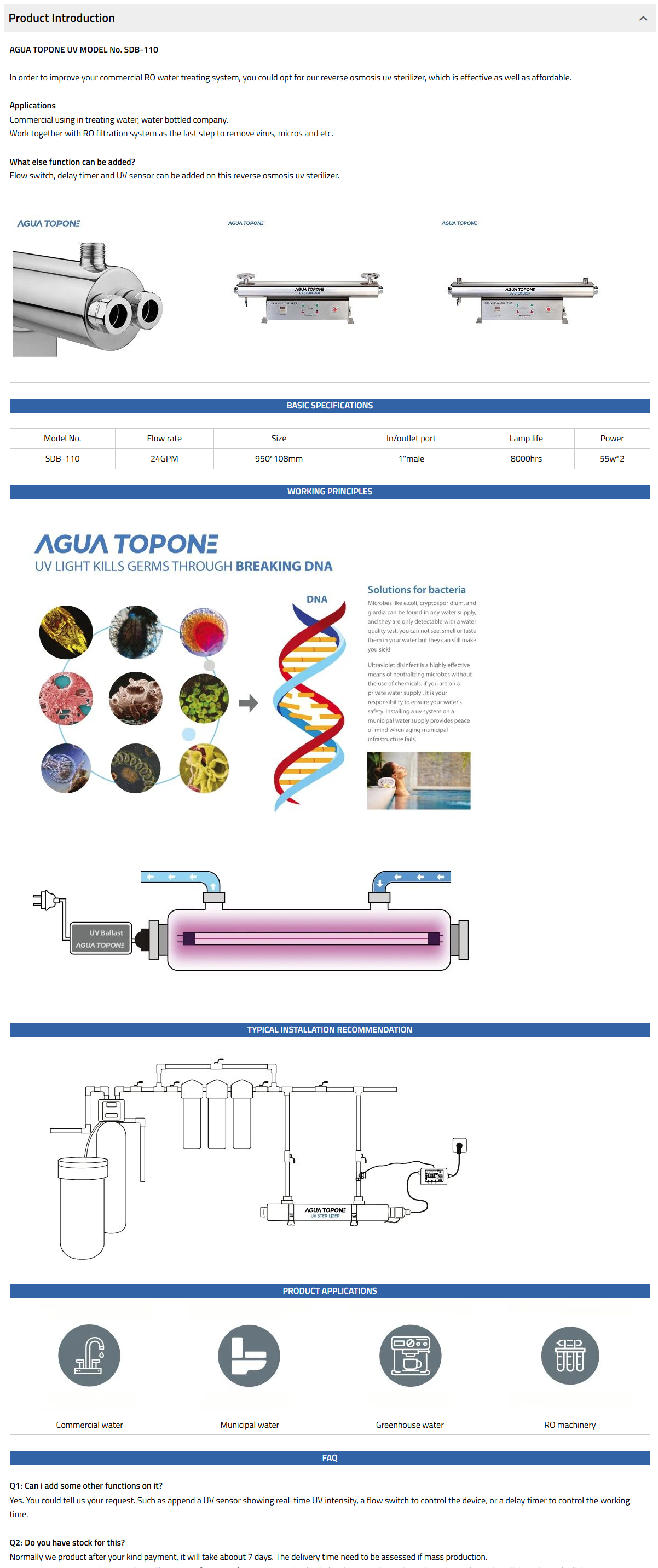 SDB series is one of the most cost-effective uv series for commercial water treating.