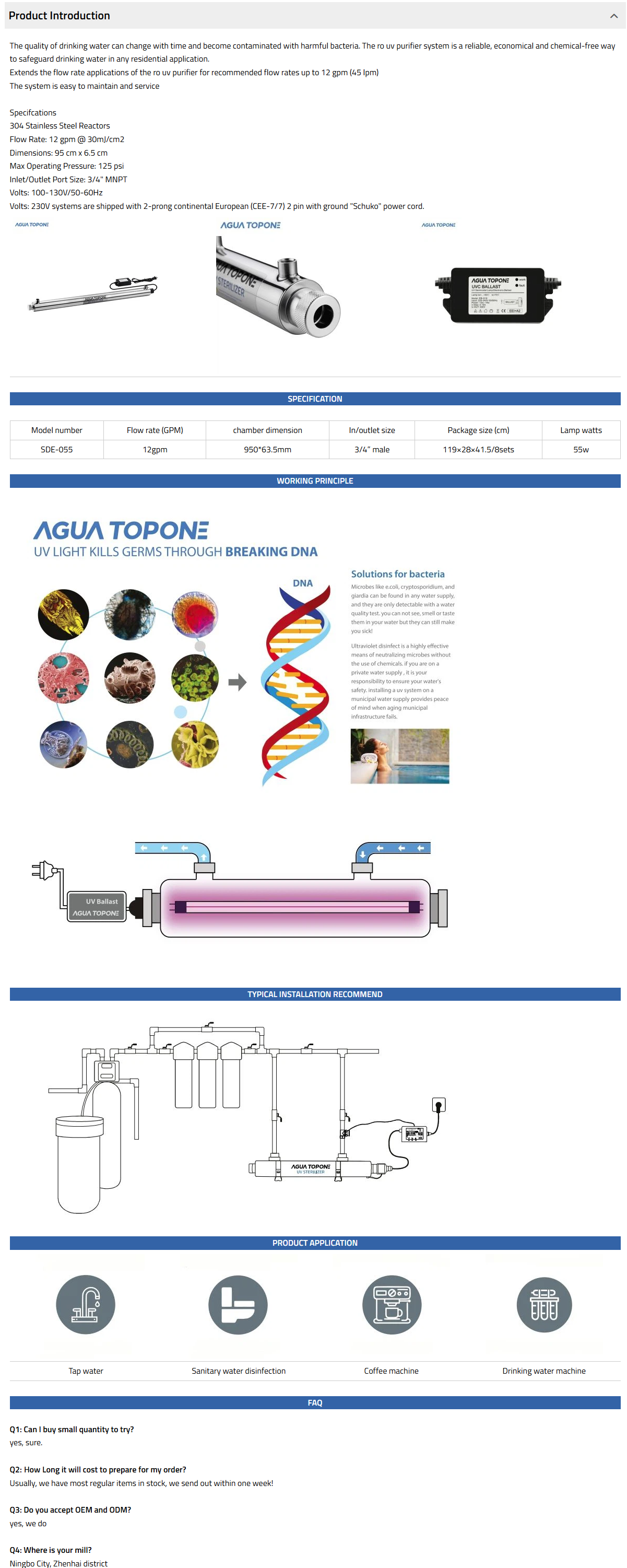 The SDE range has 8 models in the range and options to allow flexible installation, it is ideal for water tap, water disinfection system, etc.