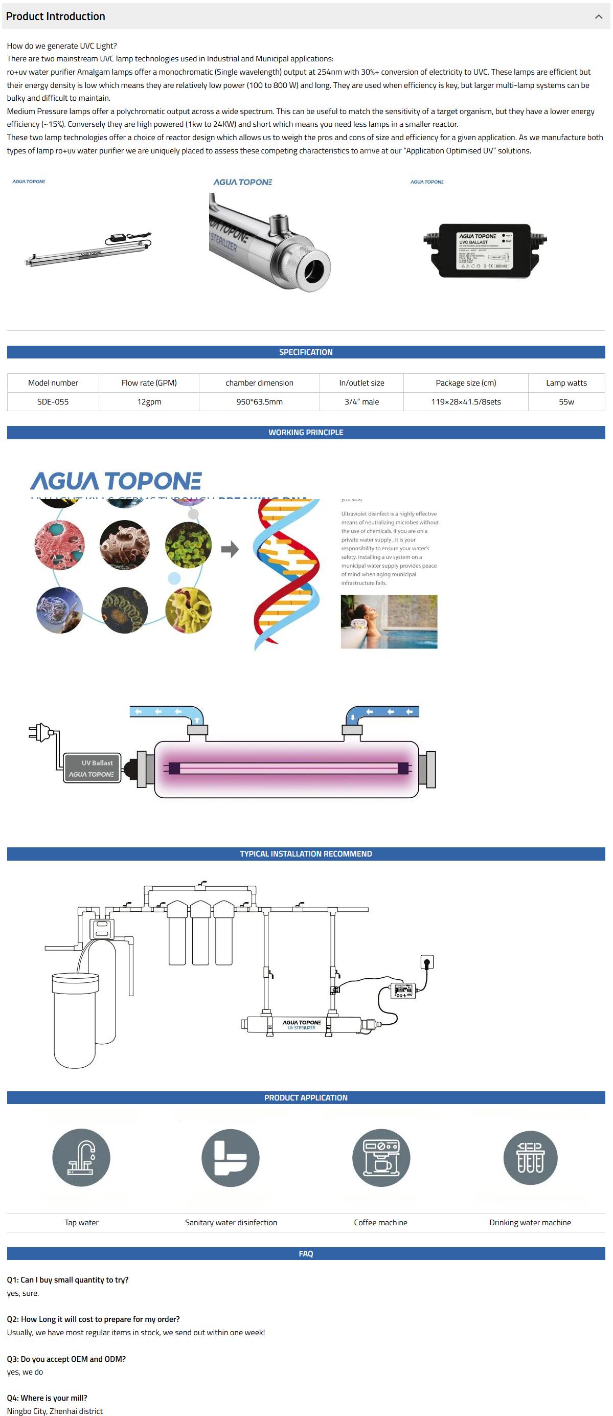 The SDE range has 8 models in the range and options to allow flexible installation, it is ideal for water tap, water disinfection system, etc.