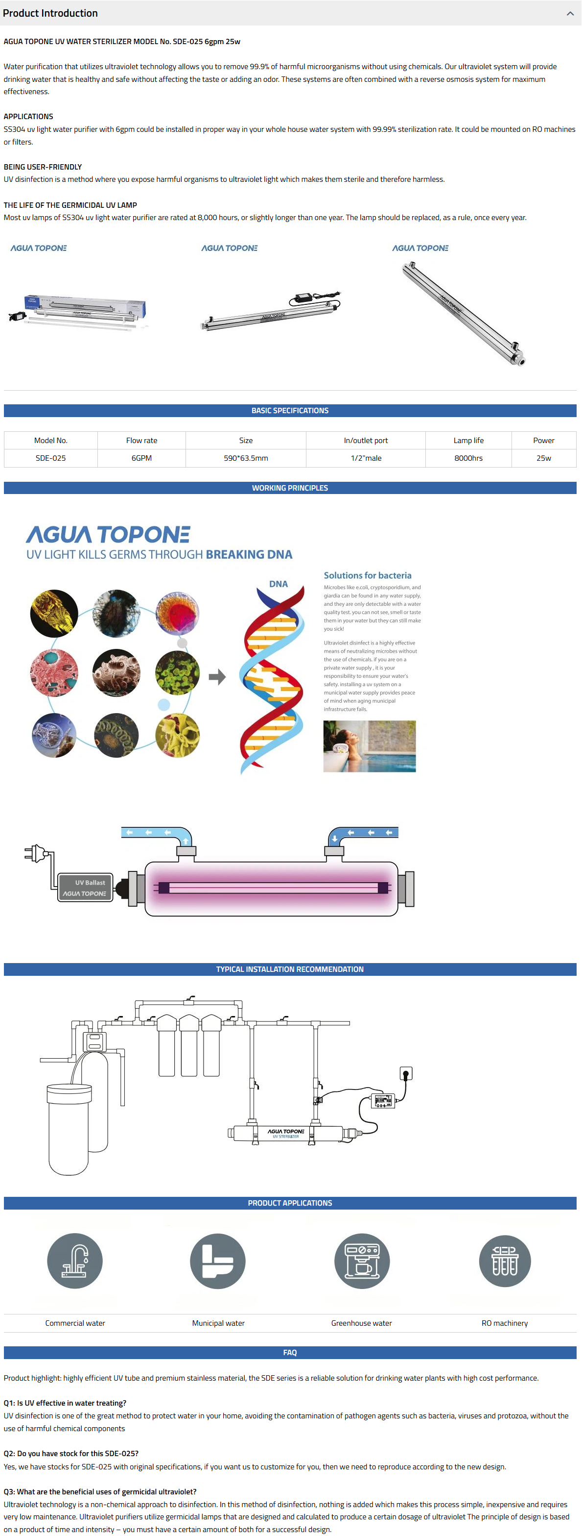 UVC disinfection is a physical process that instantly extirpates bacteria as they pass through UV lamps in the chamber.