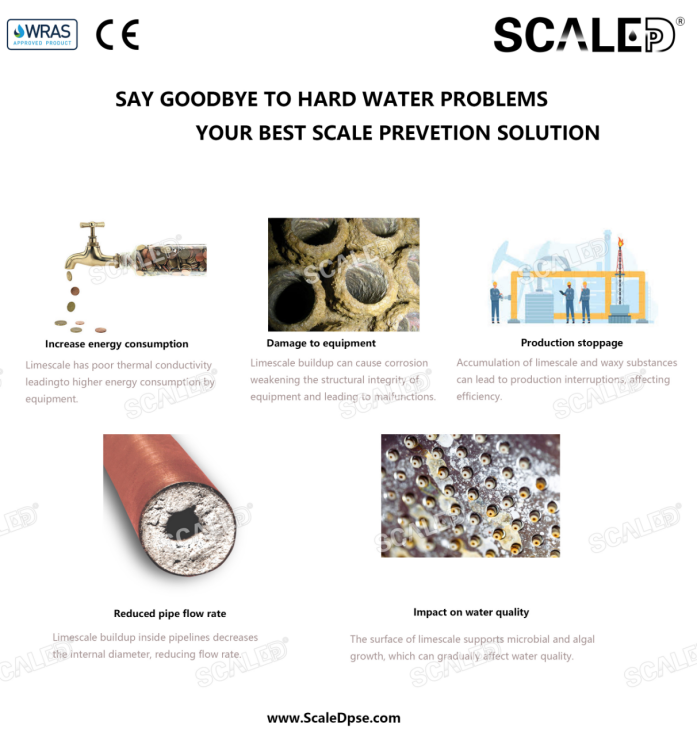 Safety: Limescale deposits provide a breeding ground for harmful contaminants and bacteria (especially Legionella), and untreated calcium can also act as a catalyst for the growth of algae, especially when pipes are full of limescale bacteria.