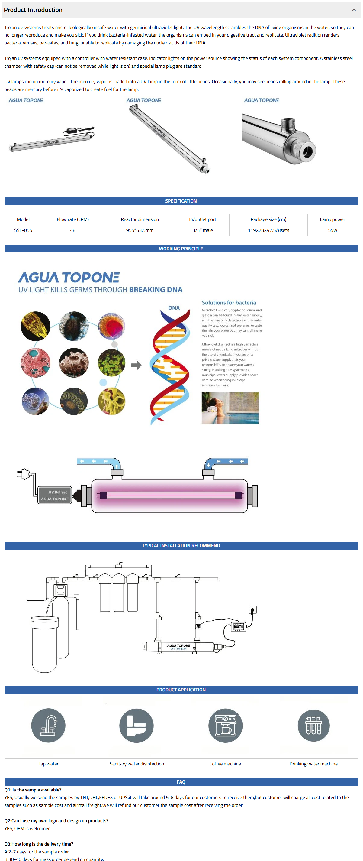 The SSE range has 8 models in the range and options to allow flexible installation, it is ideal for water tap, water disinfection system, etc.