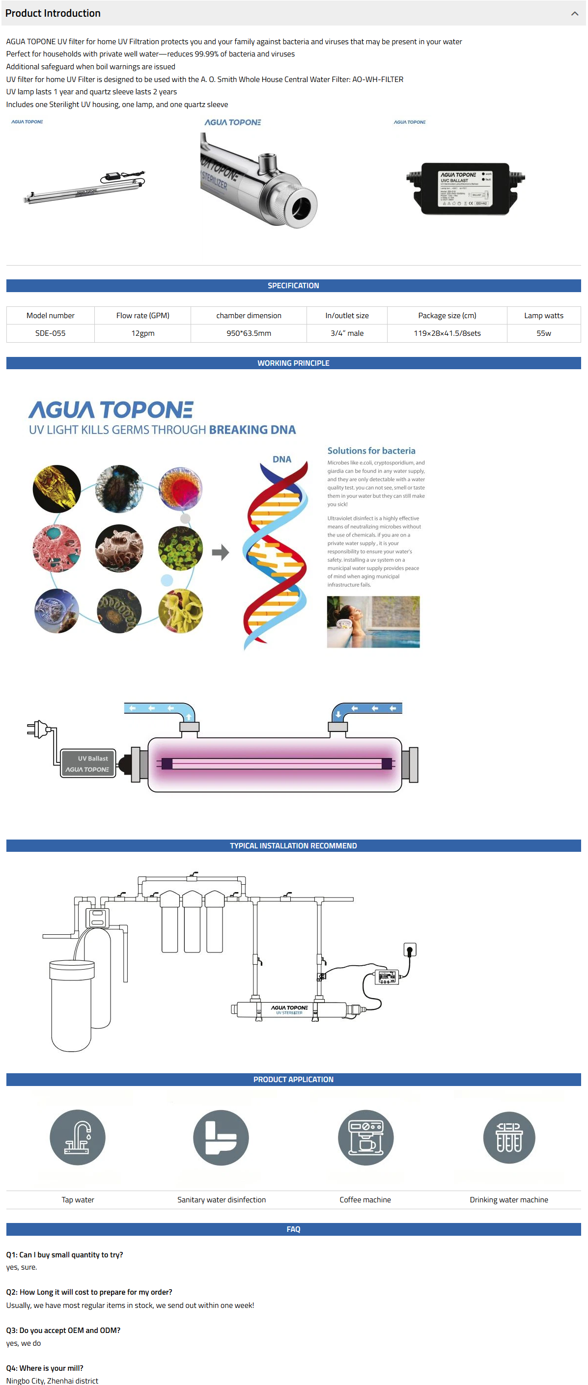The SDE range has 8 models in the range and options to allow flexible installation, it is ideal for water tap, water disinfection system, etc.