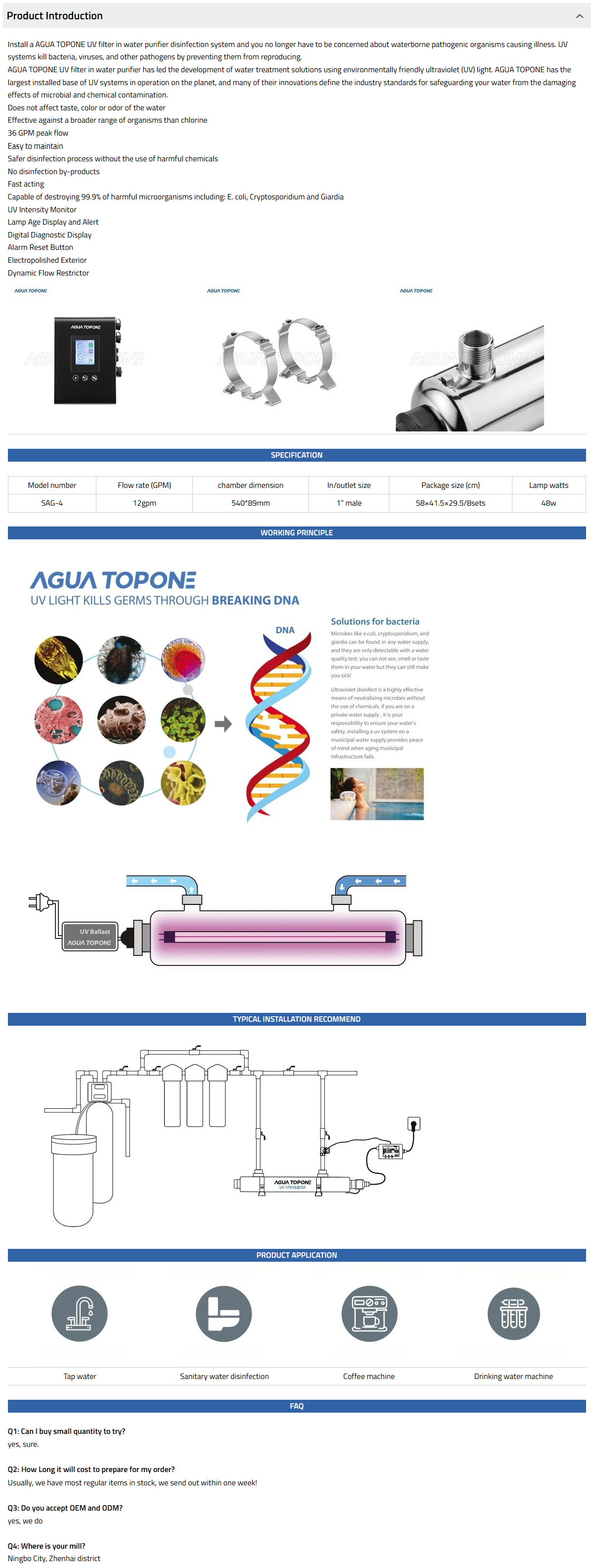 The SAG range has 3 models in the range and options to allow flexible installation, it is ideal for water tap, water disinfection system, etc.