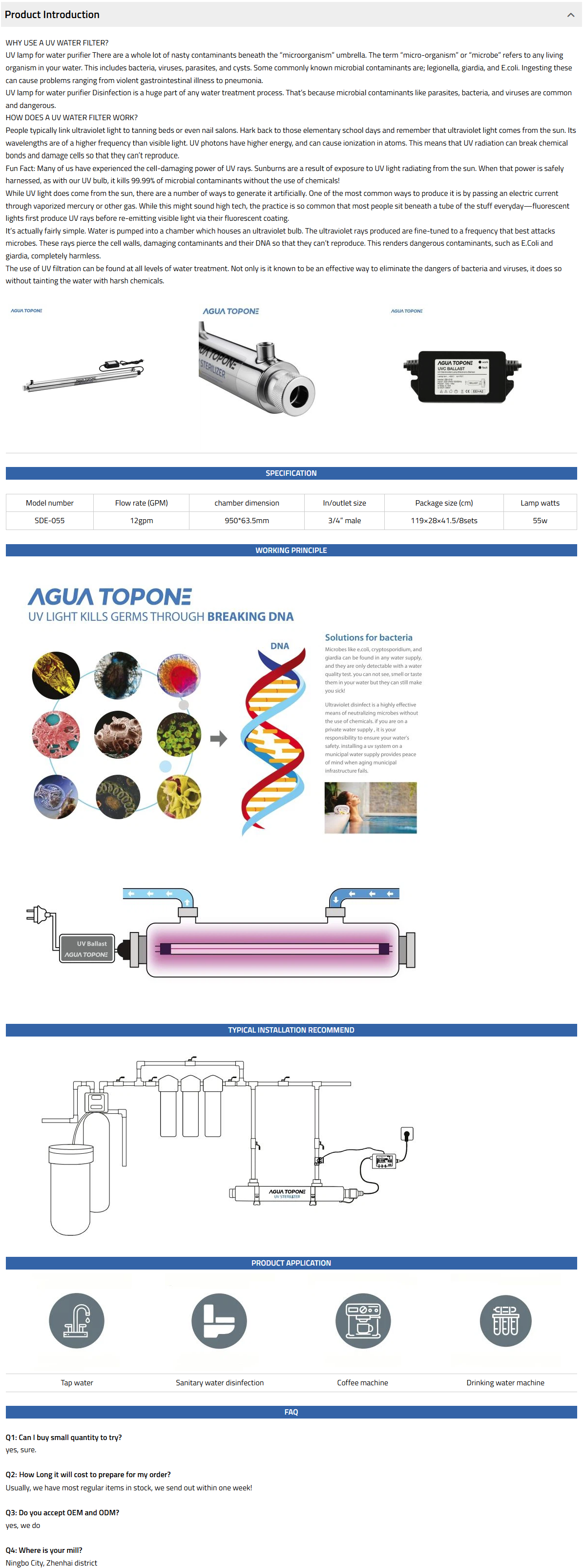 The SDE range has 8 models in the range and options to allow flexible installation, it is ideal for water tap, water disinfection system, etc.