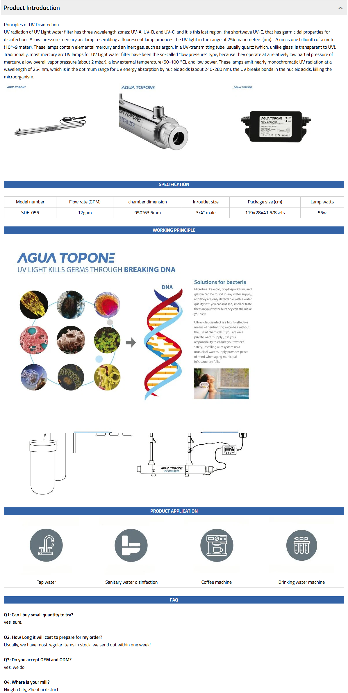 The SDE range has 8 models in the range and options to allow flexible installation, it is ideal for water tap, water disinfection system, etc.