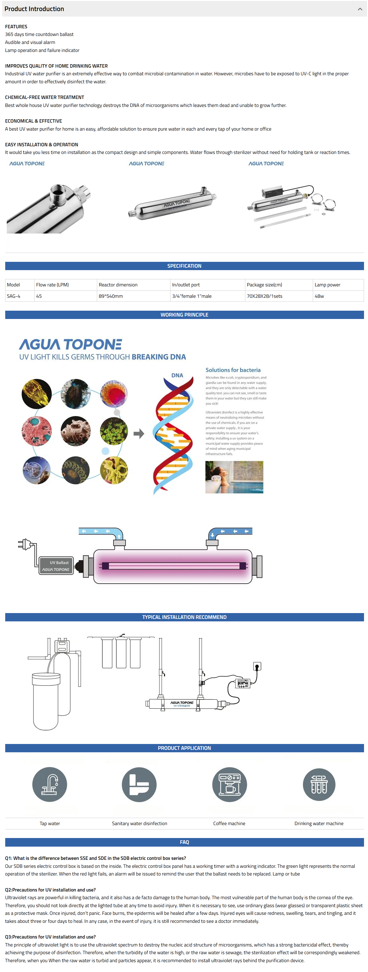 SAG series is a reliable, economical, and chemical-free way to safeguard drinking water in best UV water purifier.
