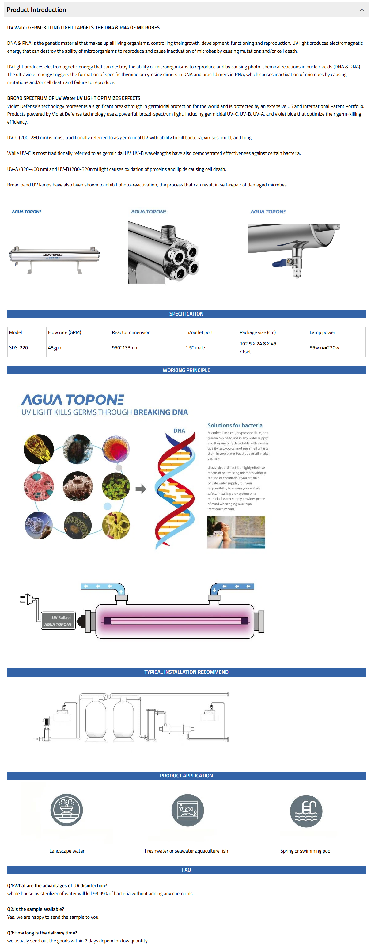 SDS UV range is mainly for commercial use which is perfect for commercial use, such as swimming pool, hotel, school etc. it comes with a stand which can be wall mounted.