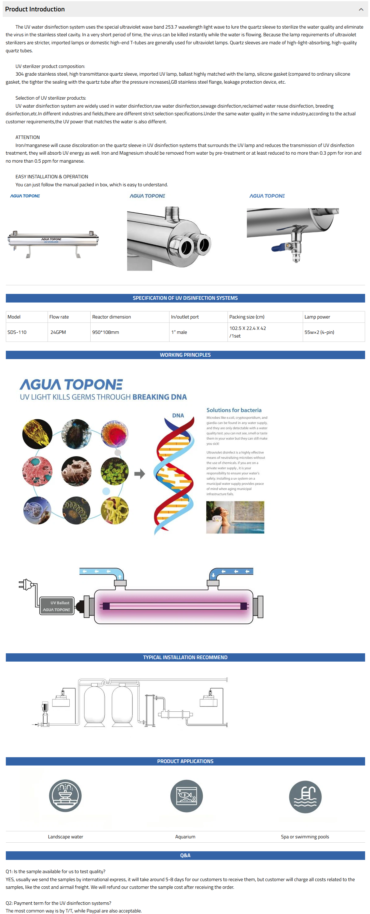 SDS range of our UV Disinfection Systems is mainly for commercial use,covering the flow rate from 24-48GPM.
