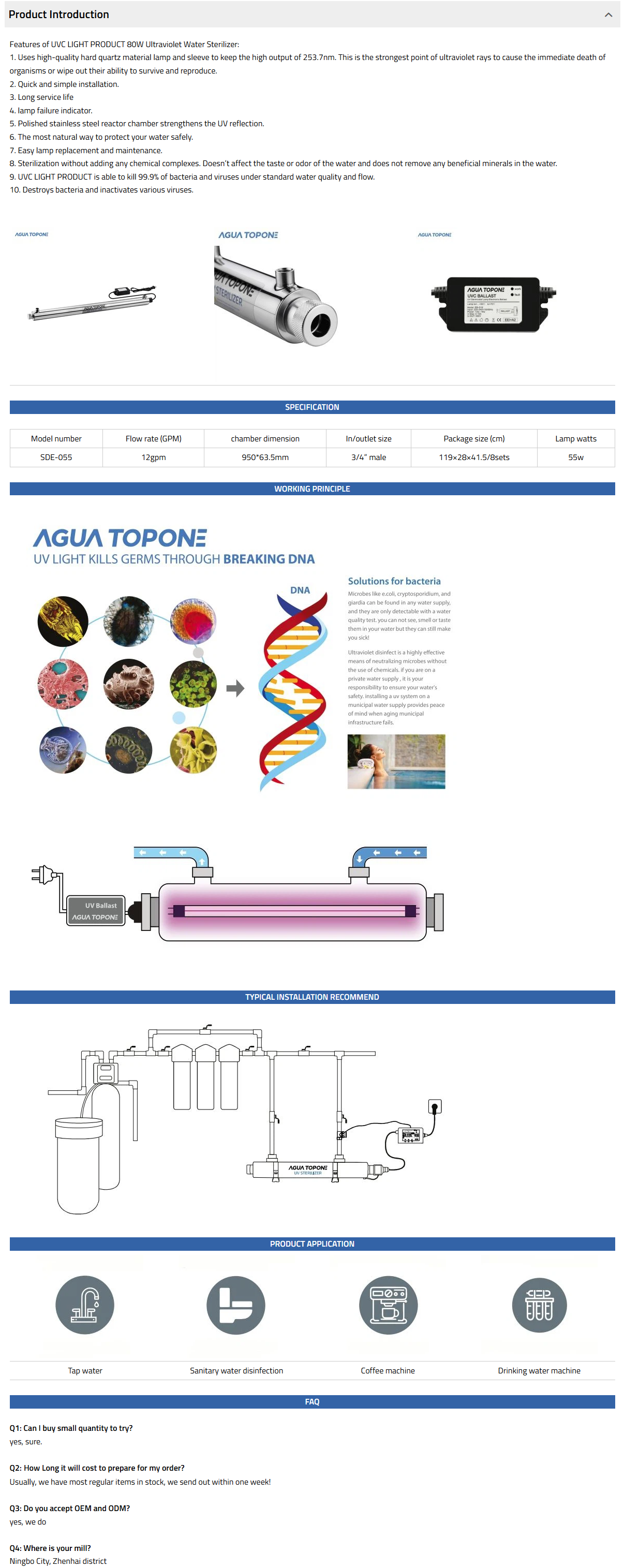 The SDE range has 8 models in the range and options to allow flexible installation, it is ideal for water tap, water disinfection system, etc.