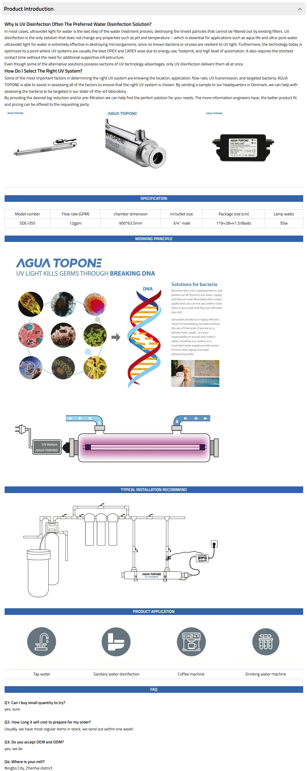 The SDE range has 8 models in the range and options to allow flexible installation, it is ideal for water tap, water disinfection system, etc.