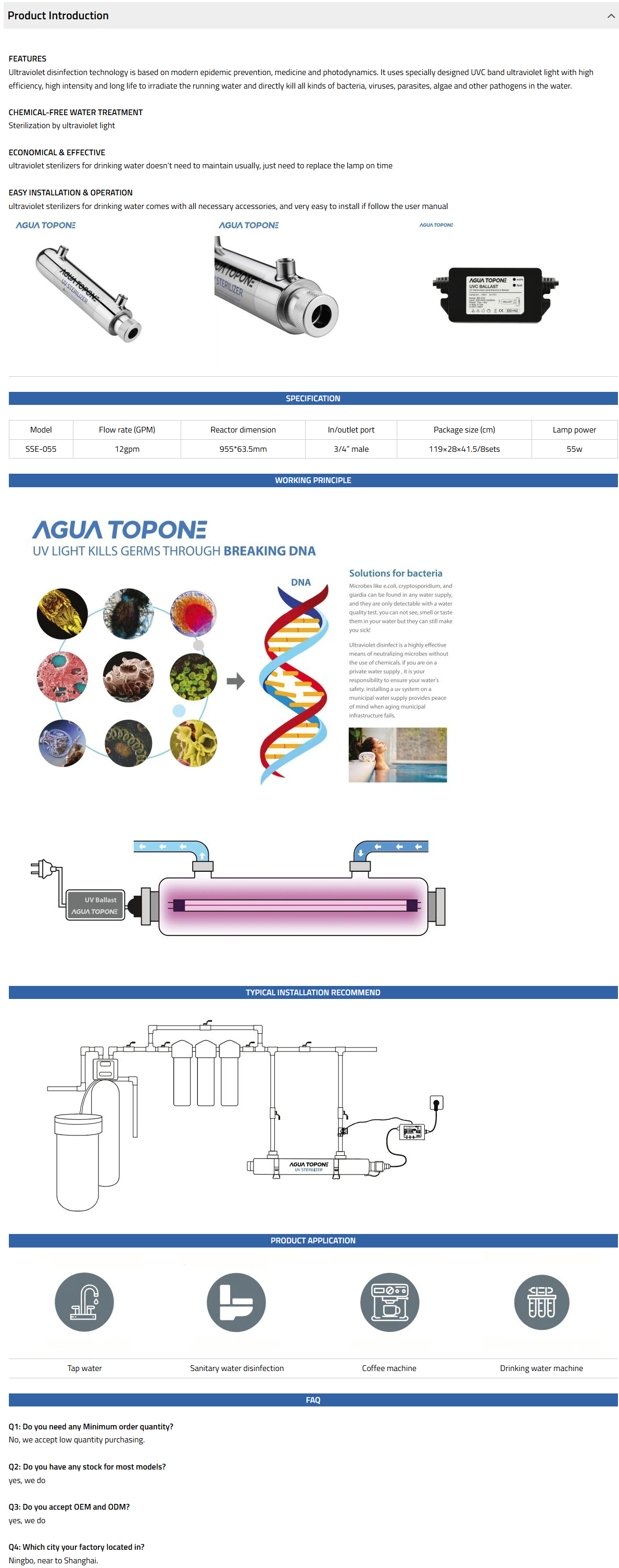 The SSE range has 8 models in the range and options to allow flexible installation, it is ideal for water tap, water disinfection system, etc.