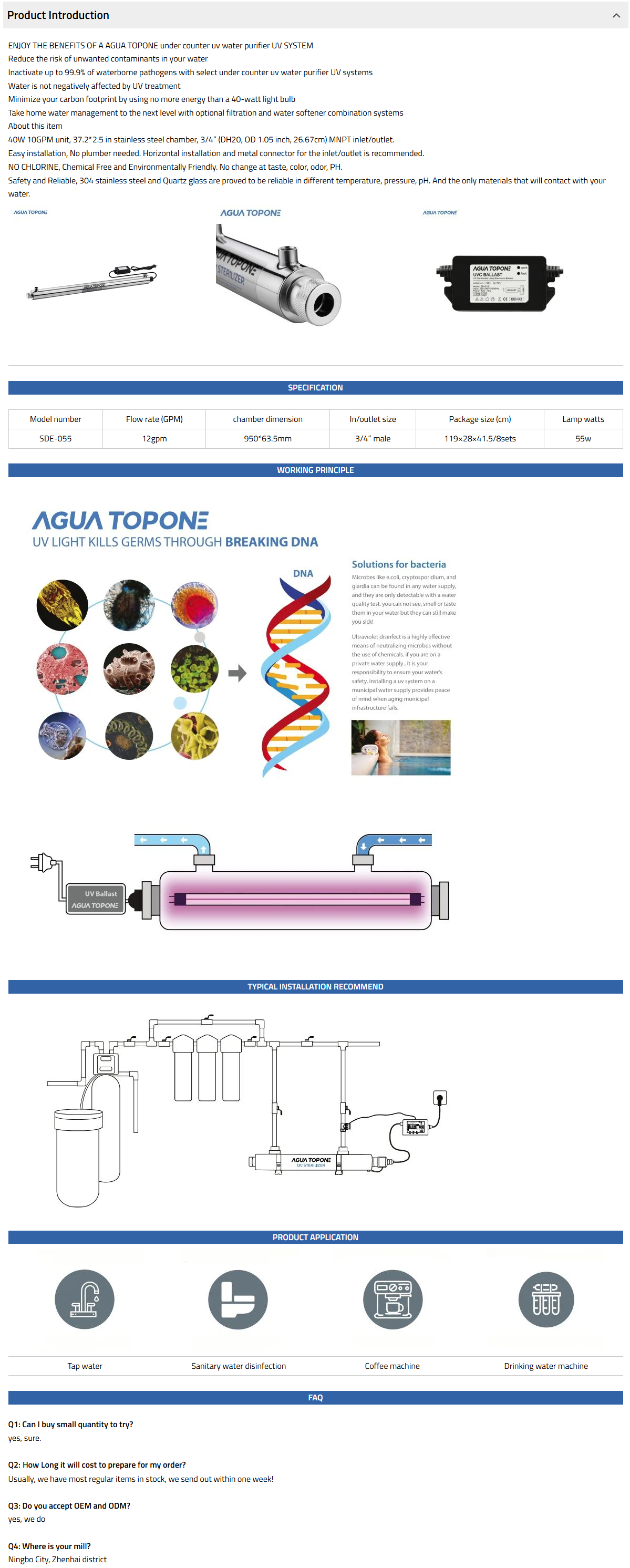 The SDE range has 8 models in the range and options to allow flexible installation, it is ideal for water tap, water disinfection system, etc.
