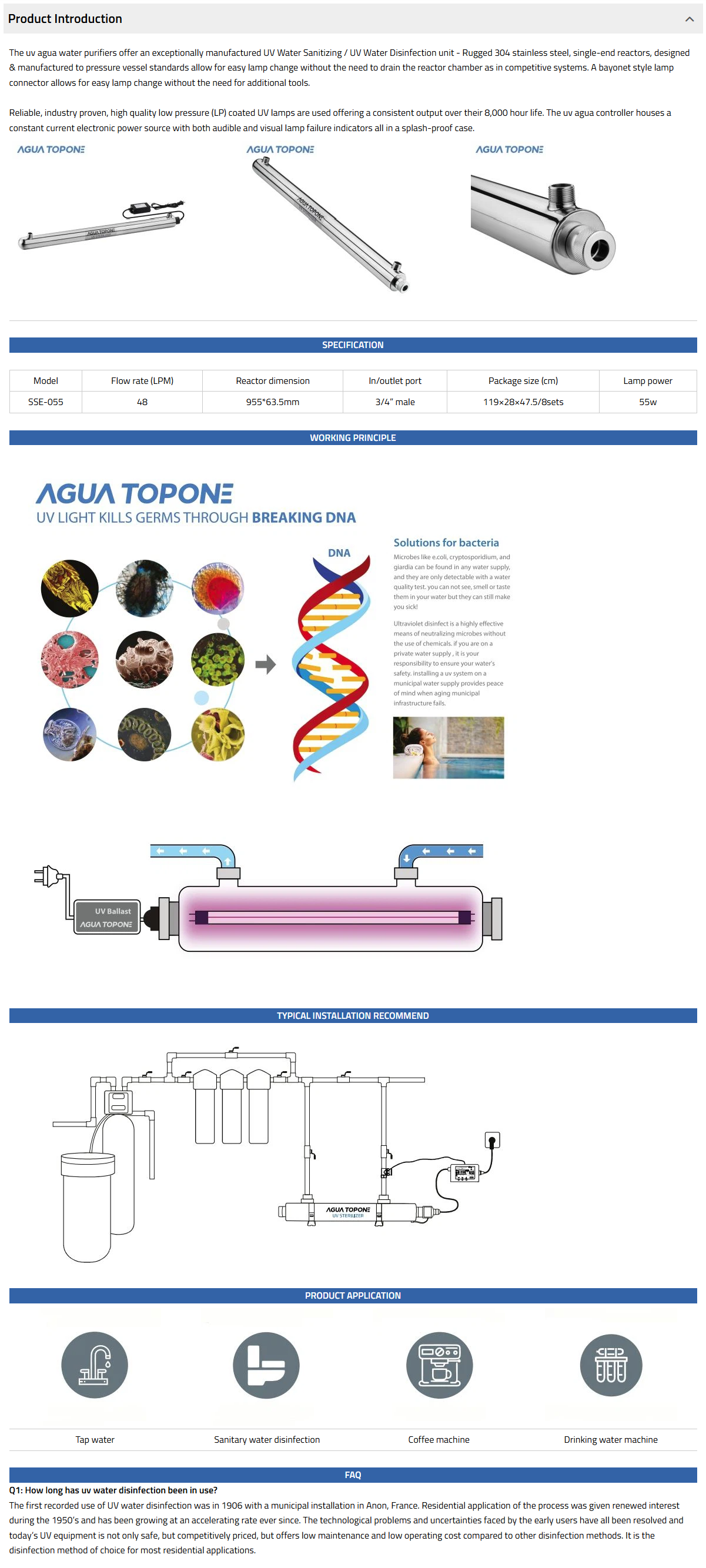 The SSE range has 8 models in the range and options to allow flexible installation, it is ideal for water tap, water disinfection system, etc.