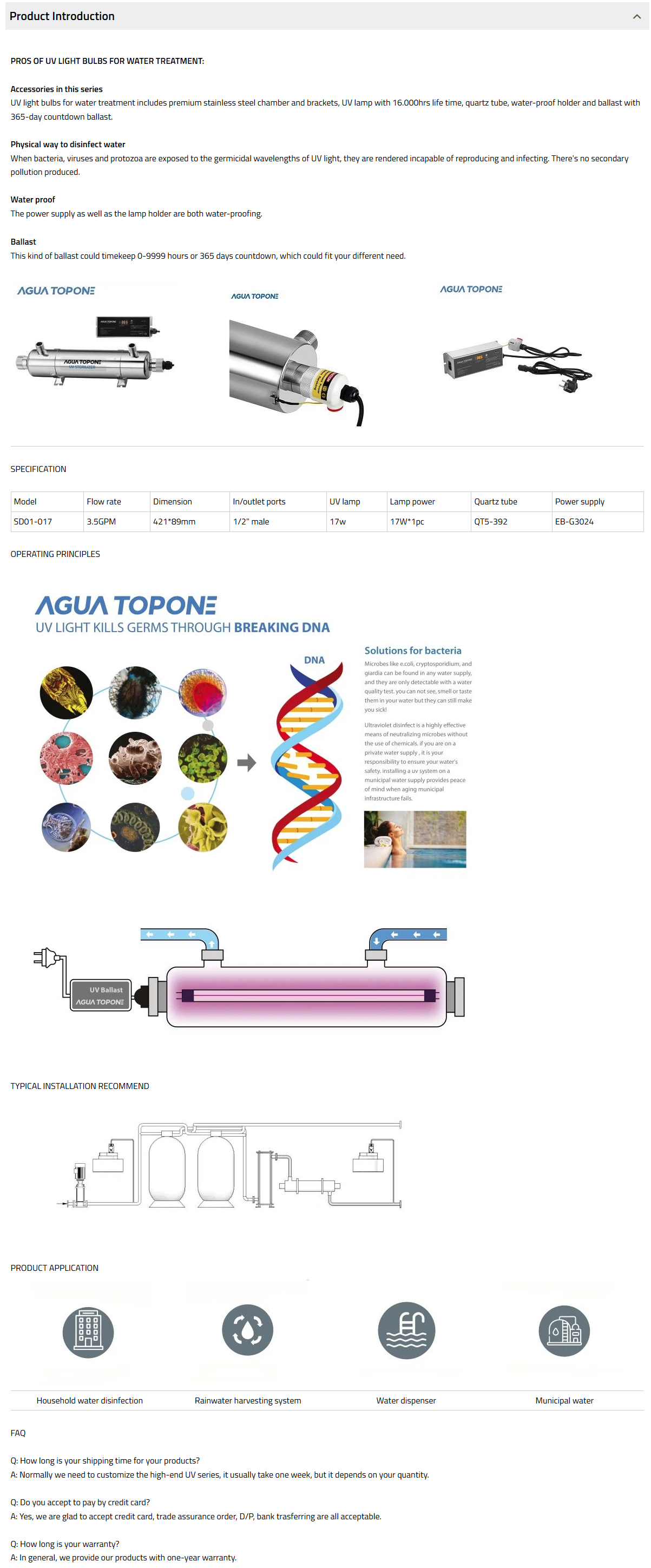 SD01 series is our high-end stainless steel UV water purifier, with countdown timer ballast.