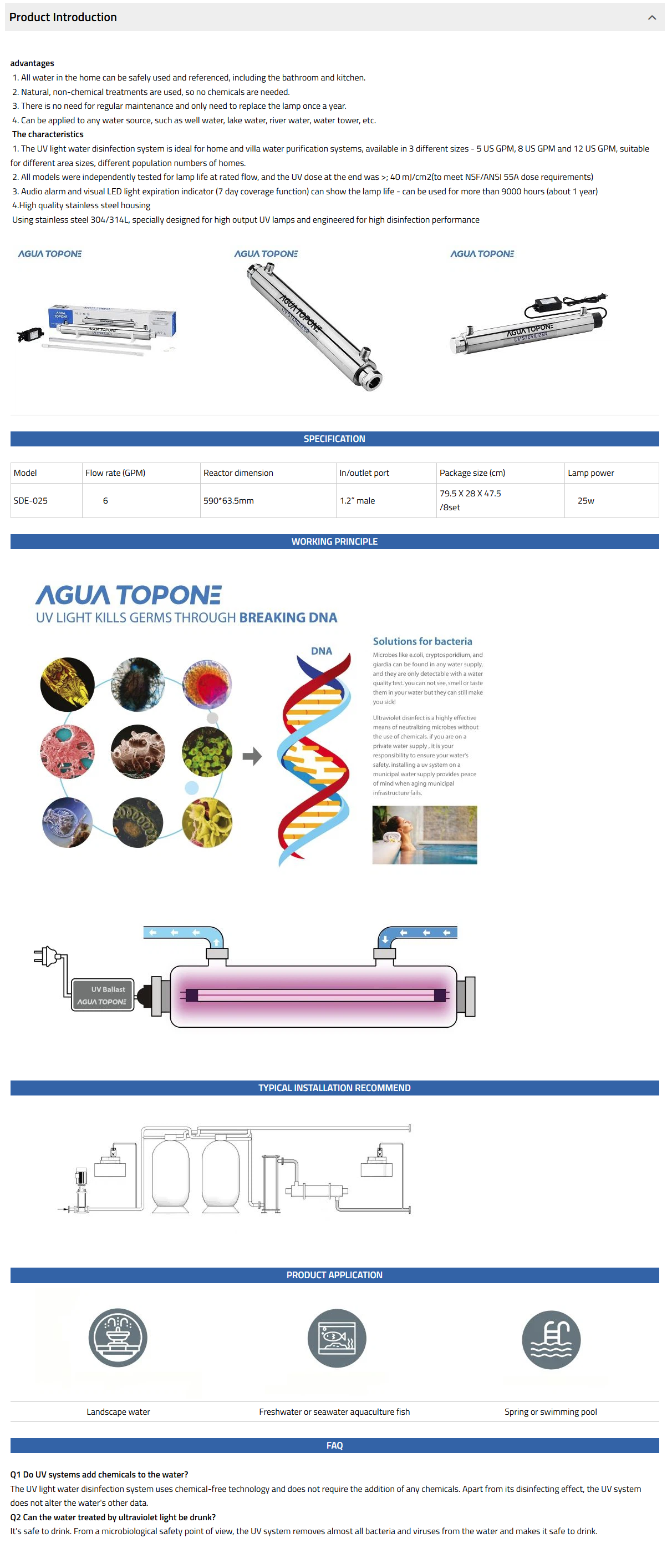 SDE UV range is mainly for commercial use which is perfect for commercial use, such as swimming pool, hotel, school etc. it comes with a stand which can be wall mounted.