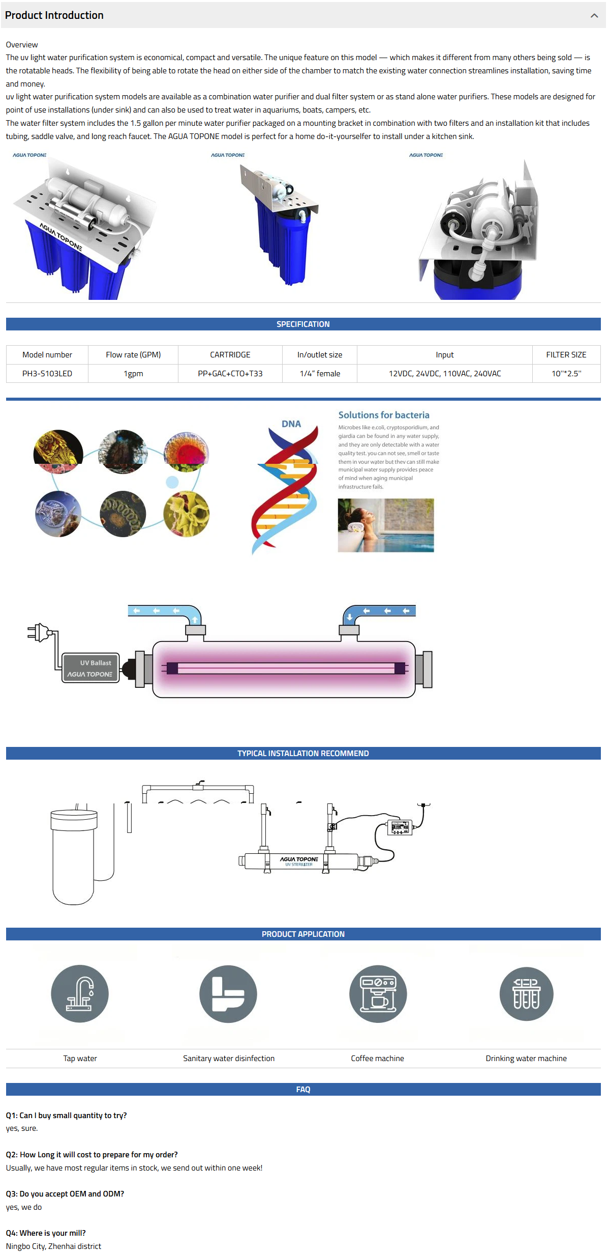 The PH3 range has 3 models in the range and options to allow flexible installation, it is ideal for water tap, water disinfection system, etc.
