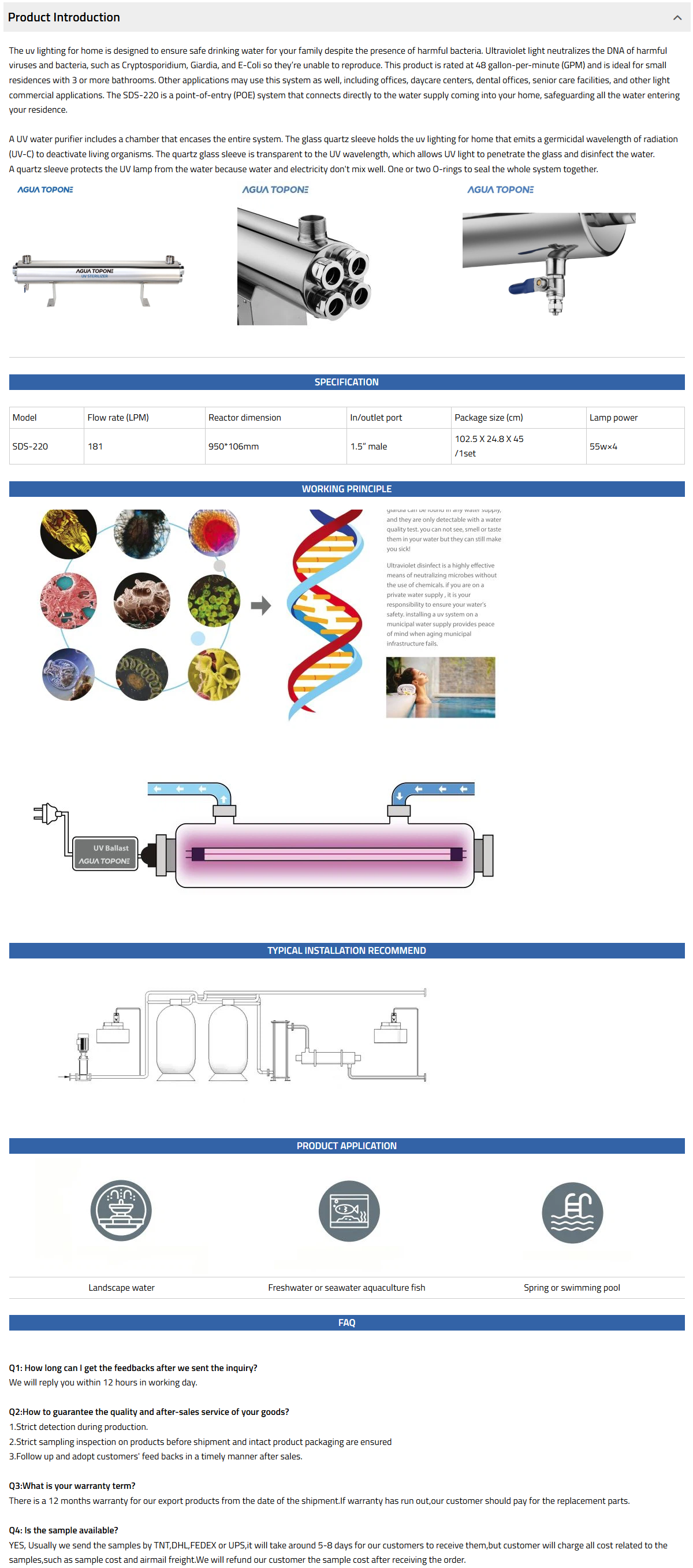 SDS UV range is mainly for commercial use which is perfect for commercial use, such as swimming pool, hotel, school etc. it comes with a stand which can be wall mounted.