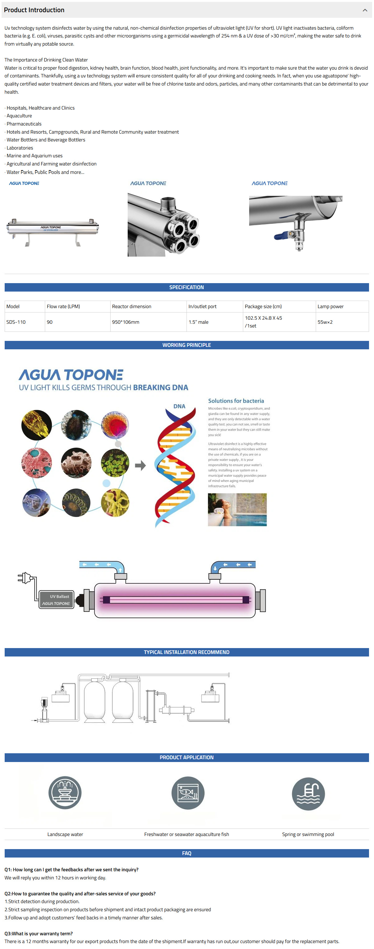 SDS UV range is mainly for commercial use which is perfect for commercial use, such as swimming pool, hotel, school etc. it comes with a stand which can be wall mounted.