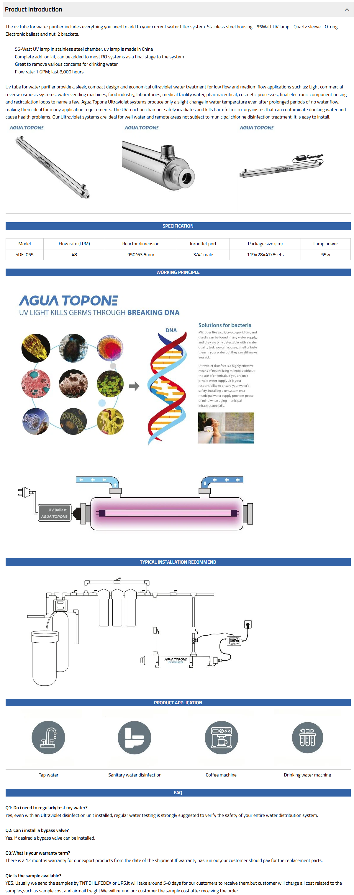 The SDE range has 8 models in the range and options to allow flexible installation, it is ideal for water tap, water disinfection system, etc.
