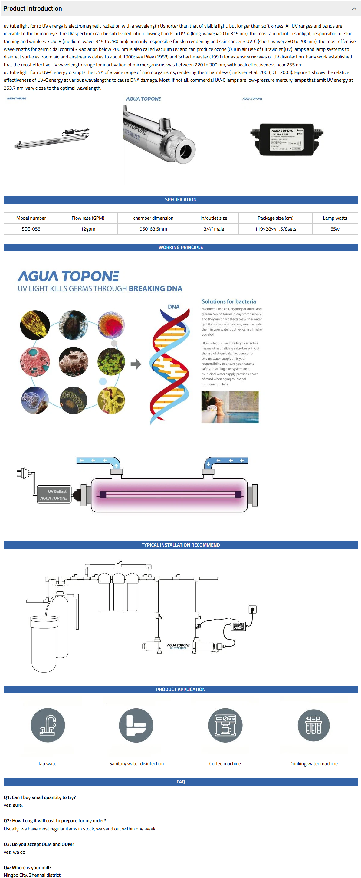 The SDE range has 8 models in the range and options to allow flexible installation, it is ideal for water tap, water disinfection system, etc.