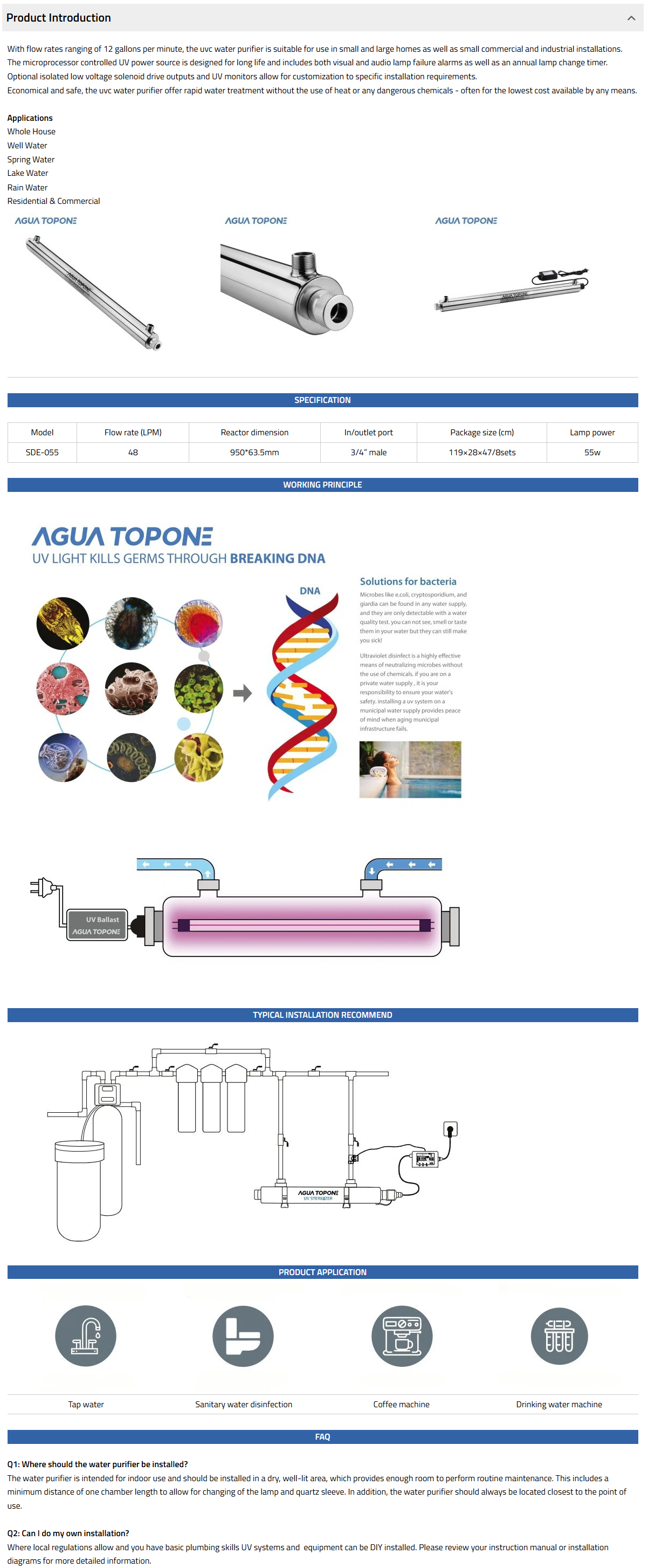 The SSE range has 8 models in the range and options to allow flexible installation, it is ideal for water tap, water disinfection system, etc.