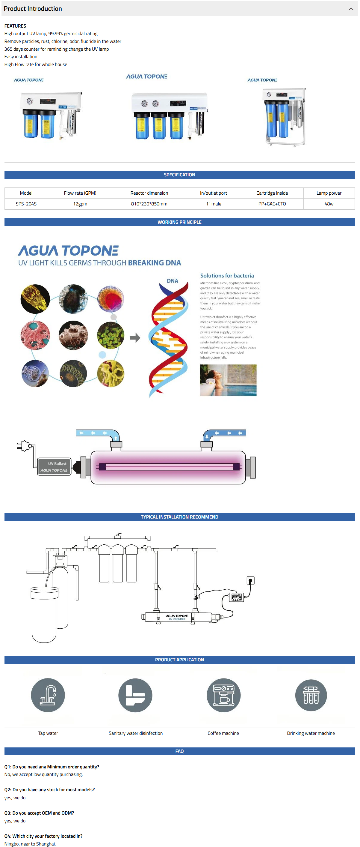 * UV system < 7gpg (120 mg / L)