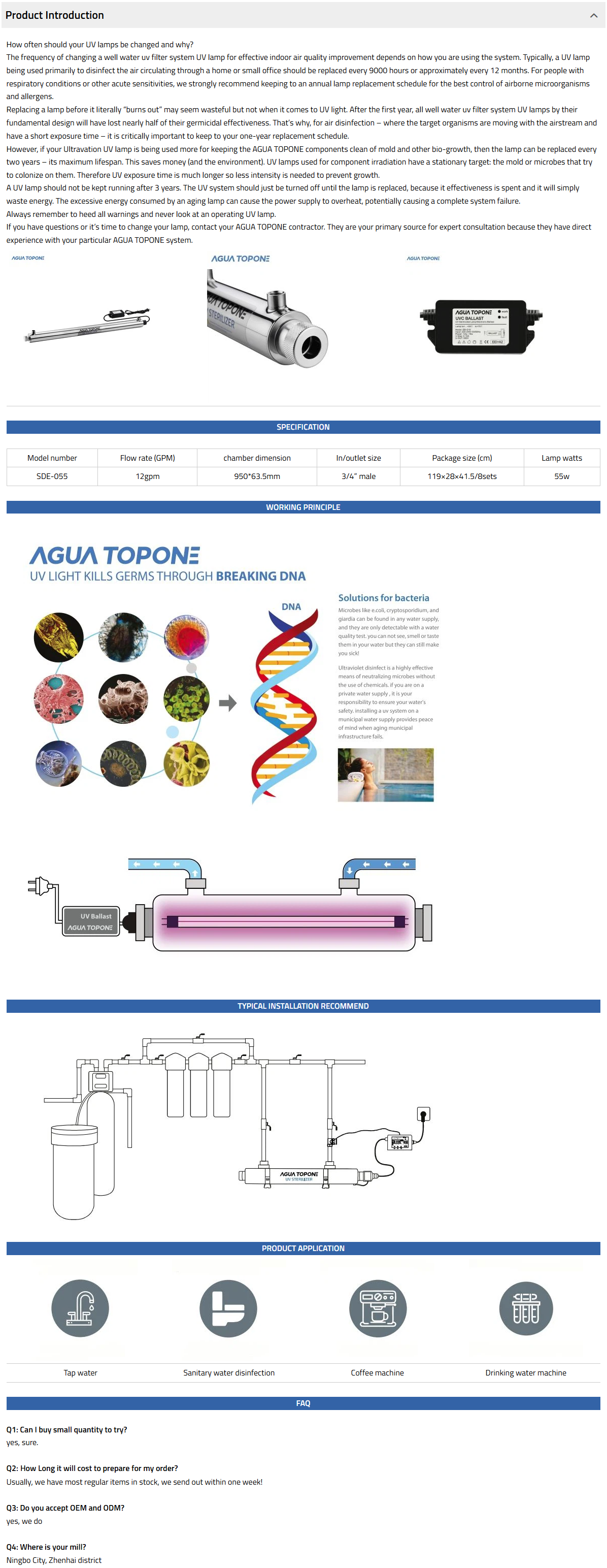 The SDE range has 8 models in the range and options to allow flexible installation, it is ideal for water tap, water disinfection system, etc.